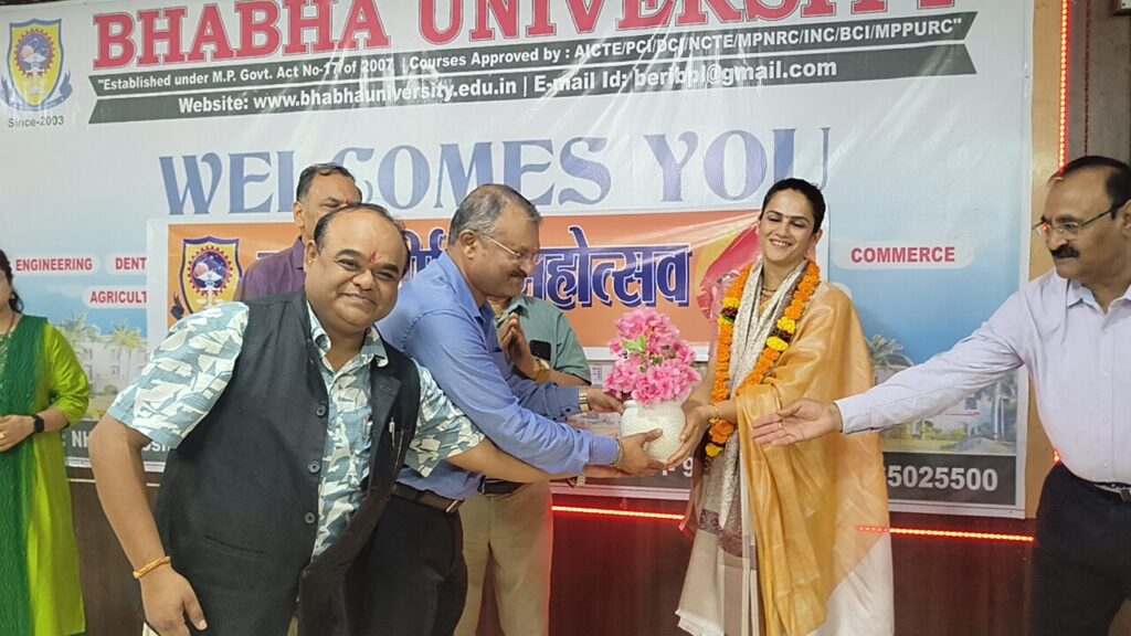 सीएनएन सेंट्रल न्यूज़ एंड नेटवर्क–आईटीडीसी इंडिया ईप्रेस / आईटीडीसी न्यूज़ भोपाल : भाभा विश्व विद्यालय में गुरु पूर्णिमा का त्योहार बहुत धूम धाम से मनाया गया इस उपलक्ष्य पर मुख्य अतिथि मूनशॉट प्राइवेट की संस्थापक, योगा इंस्ट्रक्टर एवं न्यूट्रीशन एक्सपर्ट अनुपम मिश्रा उपस्थित थी जिन्होंने गुरु पूर्णिमा का महत्व और गुरु पूर्णिमा क्यों मनाई जाती हैं ऐसे कई महत्वपूर्ण बिंदुओं पर प्रकाश डाला एवं और गुरु और शिष्य के रिश्ते पर प्रकाश डाला। साथ ही भागवत गीता और भागवतम पर बहुत सुंदर सुवाच्य प्रस्तुत किए और सभी को अपने वक्तव्य से जोड़े रखा ।