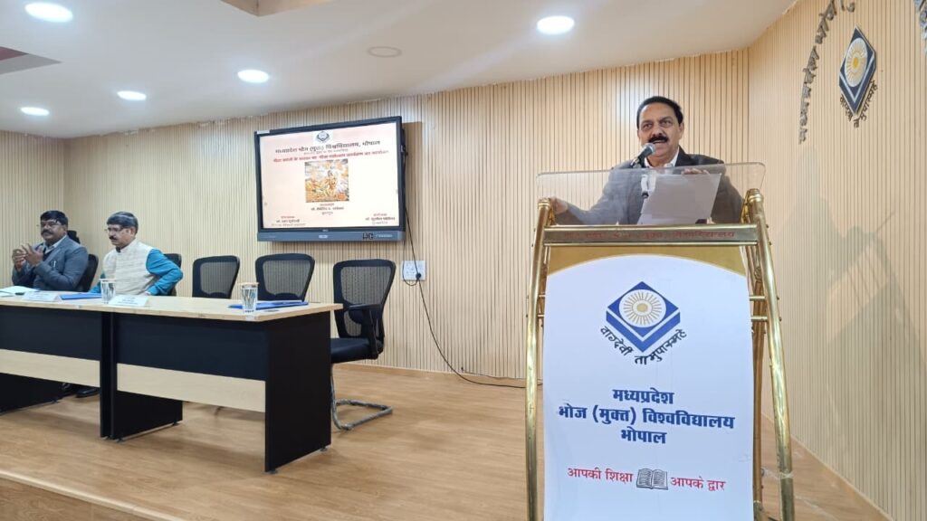 सीएनएन सेंट्रल न्यूज़ एंड नेटवर्क–आईटीडीसी इंडिया ईप्रेस /आईटीडीसी न्यूज़ भोपाल : मध्य प्रदेश भोज मुक्त विश्वविद्यालय के सभागार में गीता जयंती के अवसर पर गीता महोत्सव कार्यक्रम का आयोजन किया गया। इस अवसर पर मुख्य वक्ता के रूप में भोज मुक्त विश्वविद्यालय के प्राध्यापक बीबी शर्मा एवं कार्यक्रम संयोजक कुल सचिव डॉक्टर सुशील मंडेरिया उपस्थित रहे।