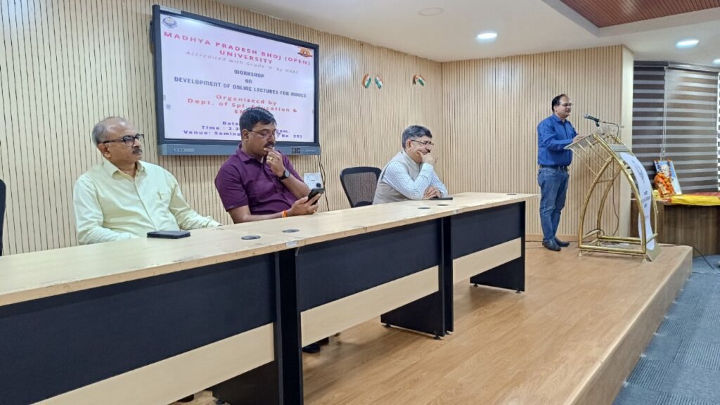 सीएनएन सेंट्रल न्यूज़ एंड नेटवर्क–आईटीडीसी इंडिया ईप्रेस / आईटीडीसी न्यूज़ भोपाल : भोज मुक्त विश्वविद्यालय के विद्यार्थियों ने ऑनलाइन वीडियो लेक्चर तैयार करने की बारीकियों को समझा। विश्वविद्यालय के विशेष शिक्षा विभाग एवं इलेक्ट्रॉनिक मीडिया प्रोडक्शन एवं रिसर्च सेंटर के संयुक्त तत्वावधान में मूक्स (मैसिव ओपन ऑनलाइन कोर्सेस) विषय पर कार्यशाला का आयोजन किया गया।