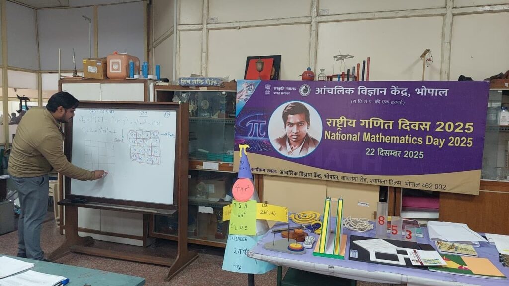 सीएनएन सेंट्रल न्यूज़ एंड नेटवर्क–आईटीडीसी इंडिया ईप्रेस /आईटीडीसी न्यूज़ भोपाल : राष्ट्रीय गणित दिवस के अवसर पर आंचलिक विज्ञान केन्द्र, भोपाल द्वारा विद्यार्थियों, शिक्षकों एवं आमजन के लिए गणित-आधारित विभिन्न कार्यक्रमों का आयोजन किया गया। इस आयोजन का उद्देश्य गणित को रोचक, व्यावहारिक एवं आनंददायक रूप में प्रस्तुत करना तथा दैनिक जीवन में इसकी उपयोगिता को उजागर करना था।इस अवसर पर निम्नलिखित कार्यक्रम आयोजित किए गए:1. 3×3 रूबिक क्यूब सॉल्विंग प्रतियोगिता विद्यार्थियों में तार्किक सोच, समस्या-समाधान क्षमता एवं गणितीय अवधारणाओं की समझ विकसित करने तथा क्रम की अवधारणा से परिचित कराने के उद्देश्य से कक्षा 5 से 7 तक के विद्यार्थियों के लिए 3×3 रूबिक क्यूब सॉल्विंग प्रतियोगिता आयोजित की गई। इस प्रतियोगिता में भोपाल के विभिन्न शैक्षणिक संस्थानों से 53 विद्यार्थियों ने उत्साहपूर्वक भाग लिया।2. क्रिएटिव गणित पर हैंड्स-ऑन कार्यशाला गणित में रचनात्मकता को प्रोत्साहित करने तथा संख्याओं के पीछे छिपे रोचक तथ्यों और पैटर्न से विद्यार्थियों को अवगत कराने हेतु रचनात्मक गणित पर हैंड्स-ऑन कार्यशाला का आयोजन किया गया।
