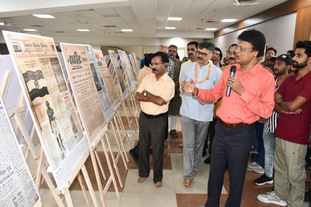 प्रदर्शनी में उदंत मार्तंड, कर्मवीर, वीर अर्जुन, लीडर, भारत, संसार, अमर उजाला, नई दुनिया, दैनिक जागरण, स्वदेश, फ्री प्रेस, राजस्थान पत्रिका, दैनिक भास्कर, युग धर्म, अमृत बाजार पत्रिका जैसे कई अखबारों के मुखपृष्ठ शामिल हैं, जिनमें कुछ अब भी प्रकाशित हो रहे हैं और कुछ बंद हो चुके हैं। यह प्रदर्शनी पत्रकारिता के विद्यार्थियों के लिए न केवल ऐतिहासिक दृष्टि से बल्कि अनुसंधान और मीडिया अध्ययन के लिए भी अत्यंत महत्वपूर्ण मानी जा रही है।