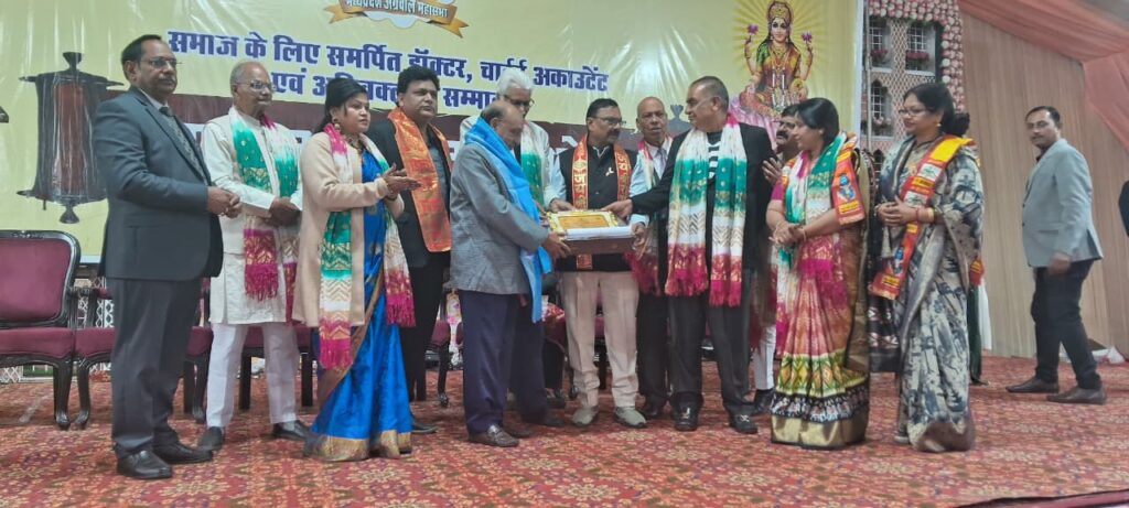 सीएनएन सेंट्रल न्यूज़ एंड नेटवर्क–आईटीडीसी इंडिया ईप्रेस /आईटीडीसी न्यूज़ भोपाल : मध्य प्रदेश अग्रवाल महासभा द्वारा राजधानी भोपाल स्थित हिंदी भवन में अग्र रत्न सम्मान समारोह का भव्य आयोजन किया गया। समारोह में चिकित्सा, विधि एवं लेखा के क्षेत्र में उल्लेखनीय योगदान देने वाले 100 से अधिक डॉक्टरों, अधिवक्ताओं एवं चार्टर्ड अकाउंटेंट्स को सम्मानित किया गया।