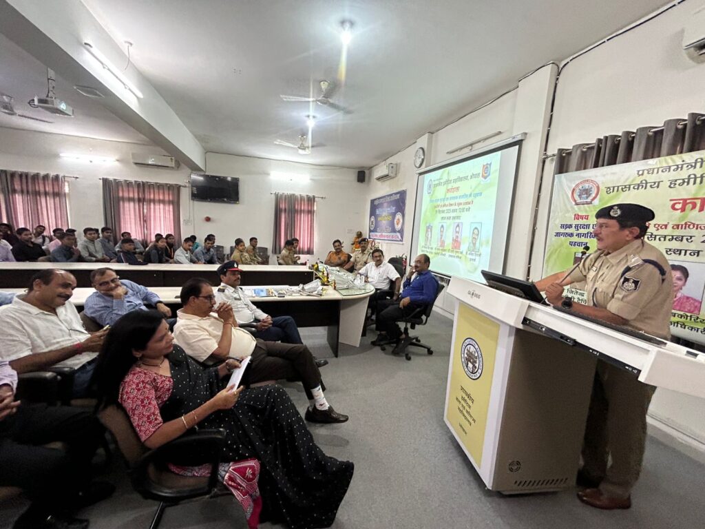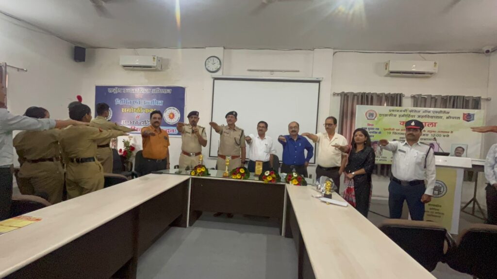 सीएनएन सेंट्रल न्यूज़ एंड नेटवर्क – आईटीडीसी इंडिया ईप्रेस / आईटीडीसी न्यूज़ भोपाल : अतिरिक्त पुलिस महानिदेशक, यातायात भोपाल मध्यप्रदेश के आदेशानुसार एवं सुप्रीम कोर्ट के निर्देशानुसार 22 सितम्बर 2025 तक सड़क सुरक्षा को लेकर विशेष अभियान चलाया जा रहा है। इसी क्रम में प्रधानमंत्री कॉलेज ऑफ एक्सीलेंस, शासकीय हमीदिया महाविद्यालय भोपाल में “सड़क सुरक्षा-एक जागरूक नागरिक की पहचान’ विषय पर एक कार्यशाला का आयोजन किया गया। इस कार्यशाला में डीसीपी टैफिक जितेन्द्र पवार मुख्य अतिथि, एसीपी विजय कुमार दुबे विशेष अतिथि, मुख्य आरक्षक गिरीश कुमार सारस्वत एवं देवेन्द्र लोधी आमंत्रित अतिथि के रूप में उपस्थित रहे। कार्यक्रम की अध्यक्षता प्राचार्य अनिल शिवानी ने की।
