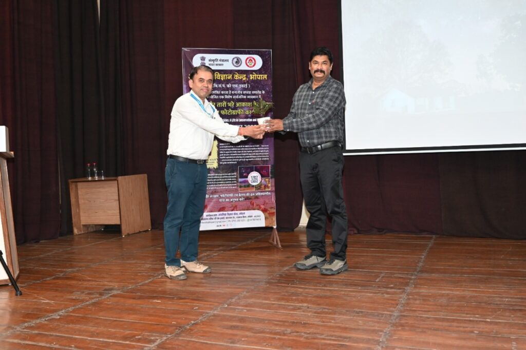 अपने वास्तविक अनुभवों के साथ श्री सेन ने उपस्थित सभी प्रकार के श्रोताओं — विद्यार्थियों, शिक्षकों, प्रकृति प्रेमियों और विज्ञान उत्साहियों — को गहराई से जोड़ा। उन्होंने अपनी बात की शुरुआत रात के आकाश के अवलोकन और मध्यप्रदेश के सबसे अंधकारमय स्थलों से की गई खगोल फोटोग्राफी से की। इसके पश्चात् उन्होंने अपने कैमरे की नज़र से वन्यजीवों की सुंदरता, प्रेम और देखभाल को जीवंत चित्रों के माध्यम से प्रस्तुत किया।