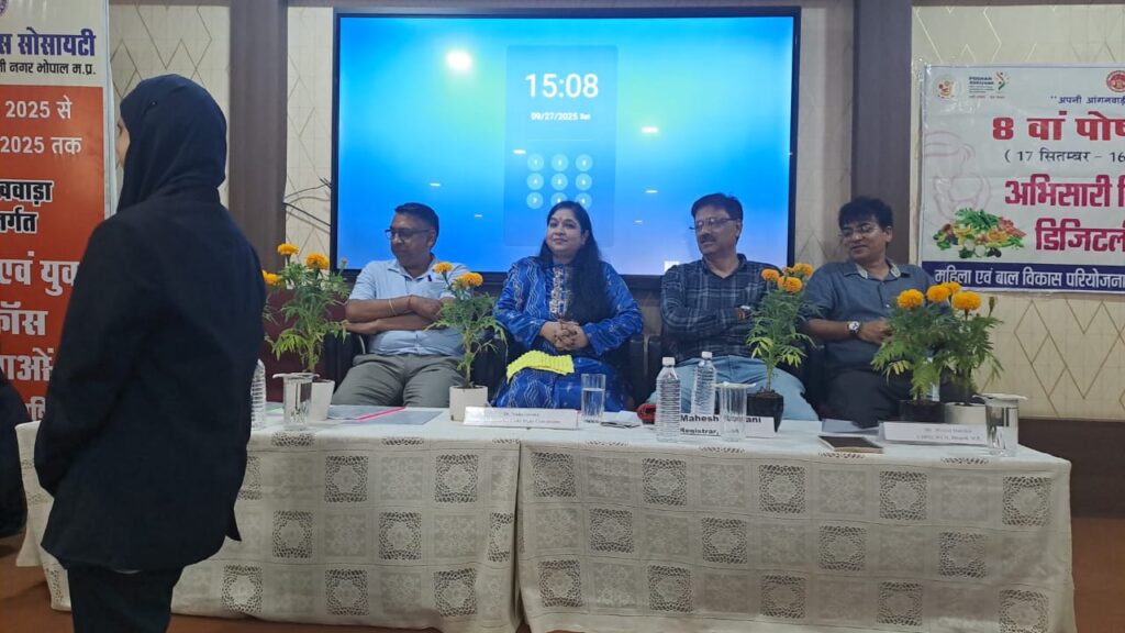 सीएनएन सेंट्रल न्यूज़ एंड नेटवर्क – आईटीडीसी इंडिया ईप्रेस / आईटीडीसी न्यूज़ भोपाल : मध्यप्रदेश तथा फूड एंड न्यूट्रिशन विभाग के सहयोग से आयोजित किया गया। इस अवसर पर “महिला एवं बाल पोषण, कुपोषण उन्मूलन और स्वास्थ्य” विषय पर विचार-विमर्श किया गया। कार्यक्रम की मुख्य अतिथि निशा सक्सेना, सदस्य, मध्यप्रदेश बाल अधिकार आयोग रहीं। श्री मृदुल मालवीय, बाल विकास परियोजना अधिकारी, महिला एवं बाल विकास विभाग, भोपाल भी विशिष्ट अतिथि के रूप में उपस्थित रहे। कॉलेज के रजिस्ट्रार महेश वंजानी ने भी अपने विचार साझा किए। इस कार्यक्रम का उद्देश्य पोषण के महत्व को उजागर करना, कुपोषण की रोकथाम करना तथा छात्रों और समाज में एक स्वस्थ जीवनशैली को बढ़ावा देना था। कार्यक्रम में विशेष रूप से गर्भावस्था, स्तनपान काल, शैशवावस्था में पोषण के महत्व को लेकर जागरूकता फैलाने पर बल दिया गया। डॉ. सुधीर शर्मा द्वारा सीपीआर (कार्डियो पल्मोनरी रिससिटेशन) के महत्व को व्यावहारिक रूप से समझाया गया।