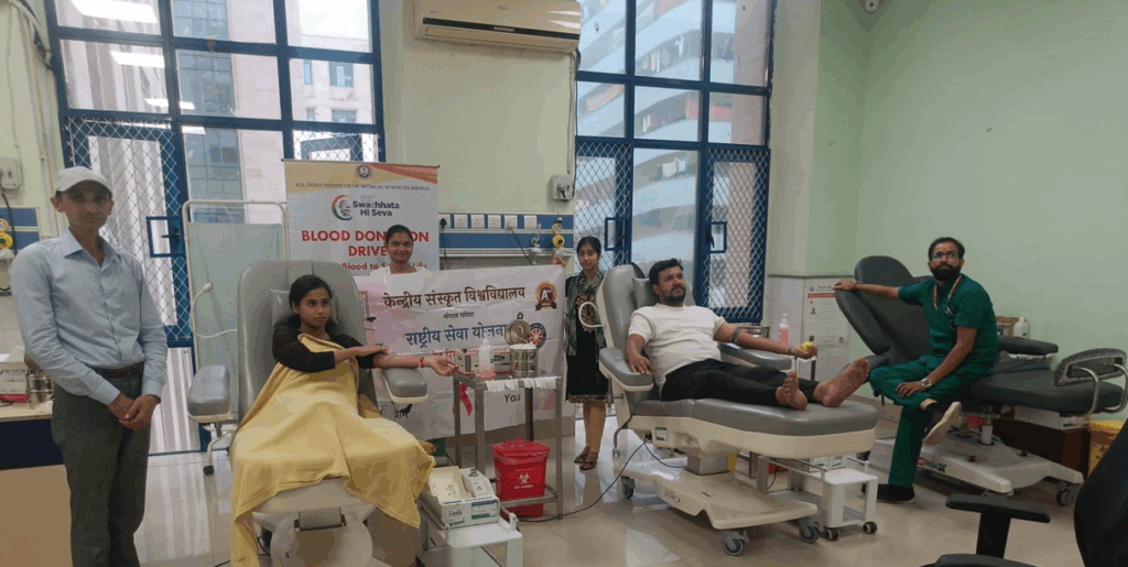 सीएनएन सेंट्रल न्यूज़ एंड नेटवर्क – आईटीडीसी इंडिया ईप्रेस / आईटीडीसी न्यूज़ भोपाल : प्रधान मंत्री नरेन्द्र मोदी जिनके जन्मदिवस के उपलक्ष्य में भारत सरकार द्वारा चलाए गए सेवा पखवाड़ा अभियान अन्तर्गत दिनांक 2 अक्टूबर 2025 तक चलाए जा रहे रक्तदान शिविरों में केंद्रीय संस्कृत विश्वविद्यालय भोपाल परिसर के रेड रिबन क्लब एनएसएस छात्र – छात्राओं ने राज भवन एवं एम्स अस्पताल भोपाल में रक्तदान किया ।