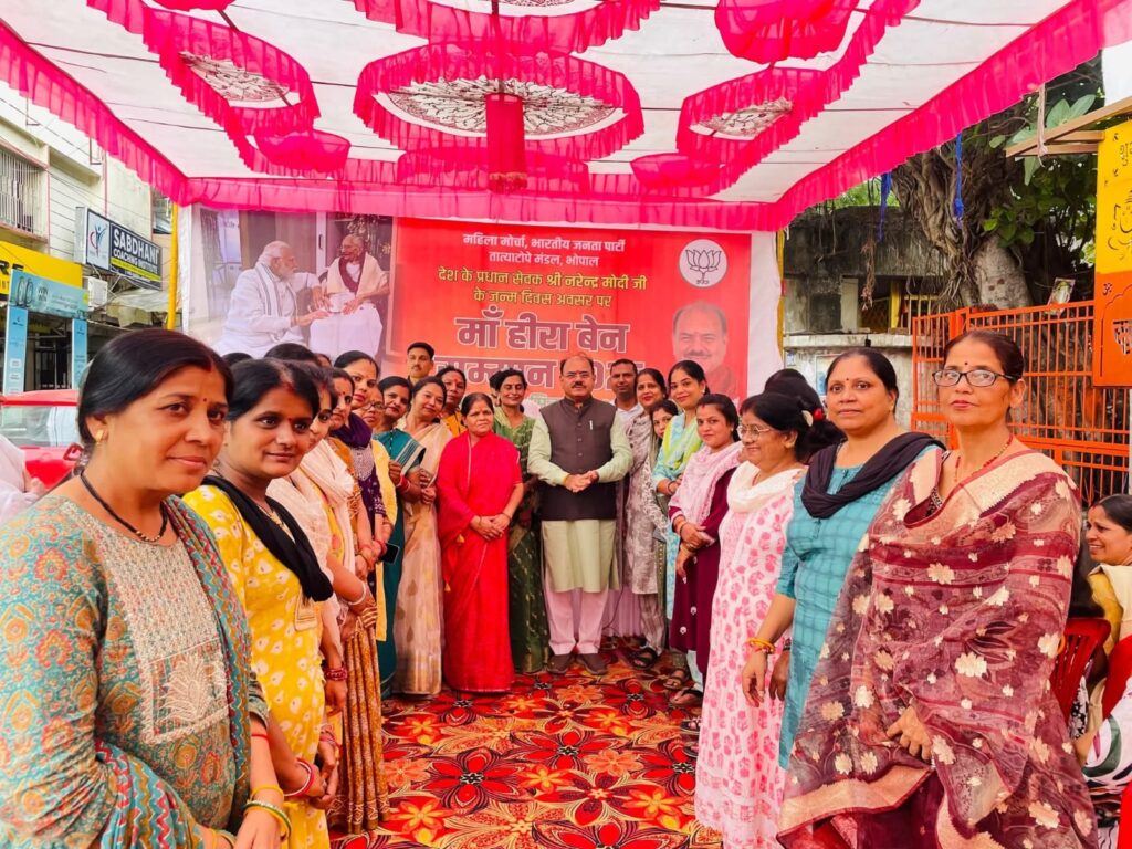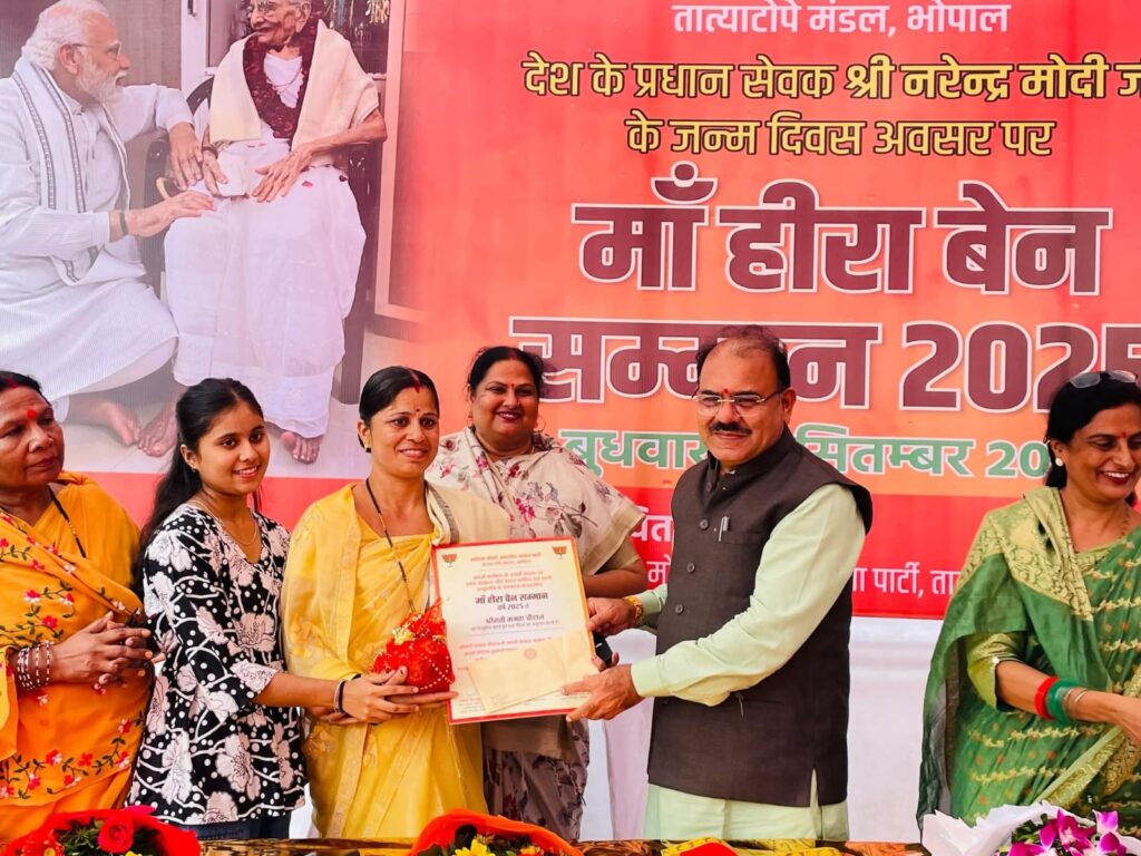 सीएनएन सेंट्रल न्यूज़ एंड नेटवर्क – आईटीडीसी इंडिया ईप्रेस / आईटीडीसी न्यूज़ भोपाल : भारतीय जनता पार्टी द्वारा प्रधानमंत्री नरेंद्र मोदी के जन्मदिन के उपलक्ष्य में चलाए जा रहे सेवा पखवाड़ा के अंतर्गत दक्षिण-पश्चिम विधानसभा क्षेत्र के तात्या टोपे मंडल महिला मोर्चा द्वारा “मां हीरा बेन सम्मान 2025” का आयोजन किया गया। इस अवसर पर भाजपा के प्रदेश महामंत्री एवं दक्षिण-पश्चिम विधानसभा क्षेत्र के लोकप्रिय विधायक भगवानदास सबनानी मुख्य अतिथि के रूप में उपस्थित रहे।सम्मान समारोह के प्रथम वर्ष में यह गौरव ममता चौहान को प्राप्त हुआ।