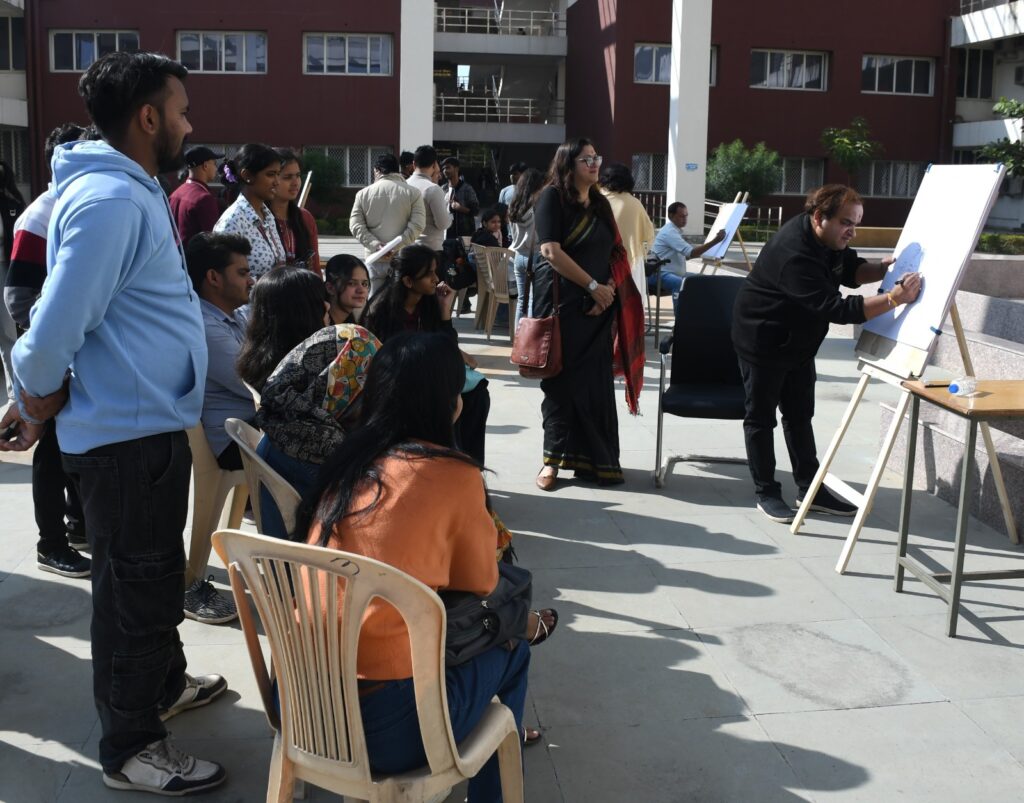 कार्यक्रम में प्रदर्शनी, लाइव डिमॉन्स्ट्रेशन तथा कार्टून एप्रिशिएशन कार्यशाला से यह साबित हुआ कि कार्टून कला न केवल जीवित है, बल्कि बदलते मीडिया परिदृश्य और सोशल मीडिया की चुनौतियों के बीच नए आकार ले रही है। छात्रों के सवालों और कलाकारों के जवाबों ने यह स्पष्ट कर दिया कि यह विधा अभी भी उस क्षमता से भरी है जो समाज को हँसाते हुए सोचने पर मजबूर कर दे।कार्टून की कला के बारे में कहा जाता है कि यह सिमटती जा रही है। हर तरह के मीडिया में कार्टून के लिए जगह सिमटती जा रही है, इस विषय पर अपनी बात रखते हुए वरिष्ठ कार्टूनिस्ट डा. देवेंद्र शर्मा ने कहा कि मौजूदा वक्त में मीडिया में बहुत बदलाव आ गए हैं। कार्टून की कला में बहुत कमी आ रही है ऐसा पूरी तरह से सही नहीं है, दरअसल कार्टून को लोग अब भी देखना चाहते हैं। मीडिया में विचार कम दिखते हैं, विज्ञापन हावी है और बाजार के अन्य कारकों का दबाव भी है, लेकिन इसके बावजूद कार्टून की कला लगातार अपनी जगह बनाए हुए है और नए आकार ले रही है। इसी बात पर सुप्रसिद्ध कार्टूनिस्ट हरिओम तिवारी ने कहा कि कार्टून में ह्यूमर और व्यंग्य दोनों ही होते हैं। आज कार्टून सोशल मीडिया पर भी पसंद किए जा रहे हैं और बहुत बड़ी तादाद में लोग उन्हें फालो करते हैं। उन्होंने कहा कि सोशल मीडिया पर जिस तरह के रिएक्शन आते हैं उससे हार्ड विषयों पर कार्टून बनाना मुश्किल भी होता जा रहा है। लेकिन कार्टून के कलाकार लगातार व्यंग्य और हास्य के साथ कार्टून बना रहे हैं।
