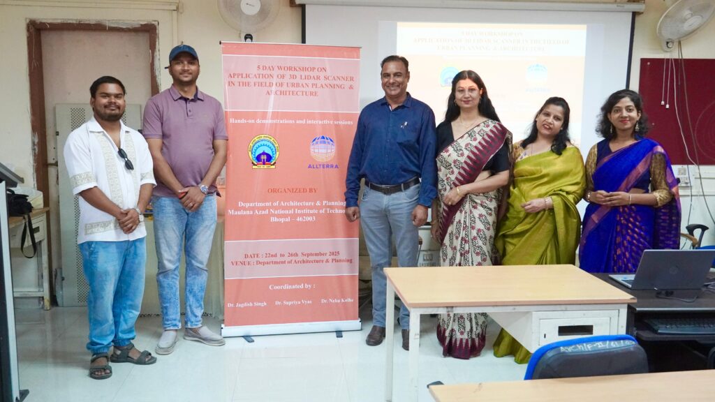 सीएनएन सेंट्रल न्यूज़ एंड नेटवर्क – आईटीडीसी इंडिया ईप्रेस / आईटीडीसी न्यूज़ भोपाल : मौलाना आजाद नेशनल इंस्टीट्यूट ऑफ टेक्नोलॉजी भोपाल के वास्तुकला और योजना विभाग ने लाइट डिटेक्शन एंड रेंजिंग तकनीक के साथ अर्बन प्लानिंग और वास्तुकला में 3डी स्कैनर का अनुप्रयोग” विषय पर एक पाँच दिवसीय कार्यशाला सफलतापूर्वक आयोजित की। यह गहन आयोजन शिक्षाविदों, छात्रों, शोधकर्ताओं और पेशेवरों के तकनीकी कौशल को बढ़ाने के लिए किया गया था, जिसका मुख्य केंद्र वास्तुकला और योजना के क्षेत्र में 3डी स्कैनिंग की बढ़ती प्रासंगिकता पर था। कार्यशाला ने प्रदर्शित किया कि यह तकनीक डिज़ाइन की सटीकता में कैसे सुधार कर सकती है, दस्तावेज़ीकरण को कैसे सुव्यवस्थित कर सकती है, और ऐतिहासिक विरासत के संरक्षण में कैसे सहायता कर सकती है। डॉ. जगदीश सिंह, सुश्री सुप्रिया व्यास, और डॉ. नेहा कोल्हे द्वारा समन्वित, कार्यशाला में विशेषज्ञ व्याख्यान, इंटरैक्टिव चर्चाएँ और हाथों से किए जाने वाले व्यावहारिक प्रशिक्षण का मिश्रण था, जिसने प्रतिभागियों को इस उभरती हुई तकनीक के वर्तमान और भविष्य के अनुप्रयोगों में बहुमूल्य अंतर्दृष्टि प्रदान की।