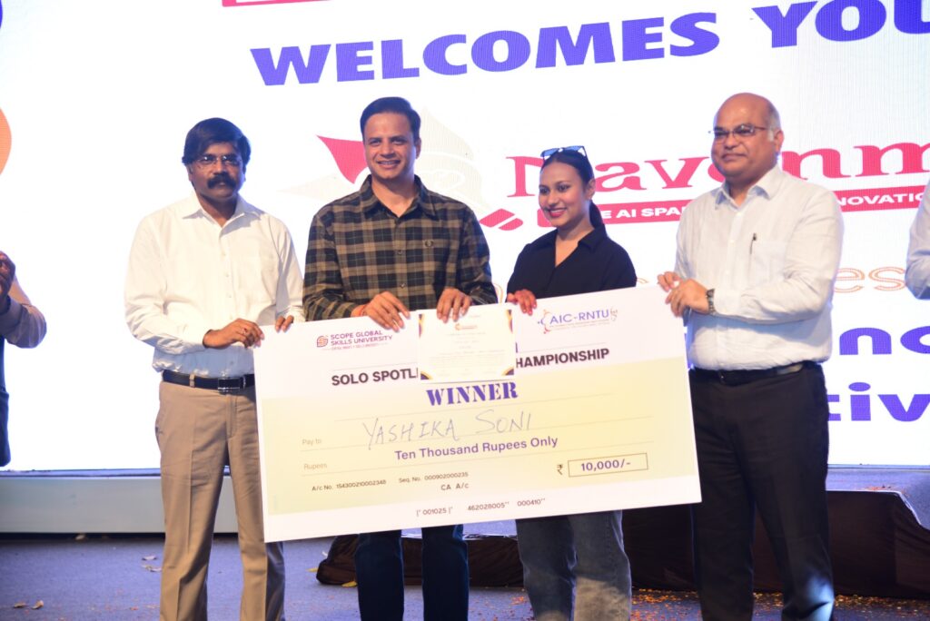 सीएनएन सेंट्रल न्यूज़ एंड नेटवर्क–आईटीडीसी इंडिया ईप्रेस /आईटीडीसी न्यूज़ भोपाल : स्कोप ग्लोबल स्किल्स यूनिवर्सिटी (एसजीएसयू) द्वारा अटल इंक्यूबेशन सेंटर – रवीन्द्रनाथ टैगोर यूनिवर्सिटी (एआईसी-आरएनटीयू) के सहयोग से आयोजित मध्य भारत के प्रमुख इनोवेशन फेस्ट नवोन्मेष 2026 का समापन रविवार को विजेता प्रतिभागियों के पुरस्कार वितरण एवं द रूट्स बैंड की आकर्षक म्यूजिकल प्रस्तुति के साथ उत्साहपूर्ण माहौल में संपन्न हुआ समापन समारोह में एसजीएसयू के चांसलर सिद्धार्थ चतुर्वेदी मुख्य अतिथि रहे। कुलगुरु विजय सिंह, कुलसचिव सितेश कुमार सिन्हा और एआईसी-आरएनटीयू के सीईओ रोनाल्ड फर्नांडिस भी उपस्थित रहे। कुलगुरु विजय सिंह ने प्रतिभागियों की रचनात्मकता और उत्साहपूर्ण सहभागिता की सराहना की और कहा कि प्रायोगिक शिक्षा और हैंड्स-ऑन अनुभव विद्यार्थियों को प्रतिस्पर्धी दुनिया में आगे बढ़ने में मदद करते हैं। विजेताओं की सूची में प्लान एक्स – बिजनेस प्लान बैटल में बीएसएसएस की टीम यूनिफाइड स्पेसेज विजेता रही, वहीं धन्यम – द एडिबल कटलरी प्रथम रनरअप और साहिका टीम द्वितीय रनरअप रही। इनोमेकर – प्रोडक्ट हैकाथॉन में एलएनसीटी की टीम हेल्थजी विजेता, क्यूब्स टीम प्रथम रनरअप और डिजिस्केल इंस्टीट्यूट की टीम द्वितीय रनरअप रही।
