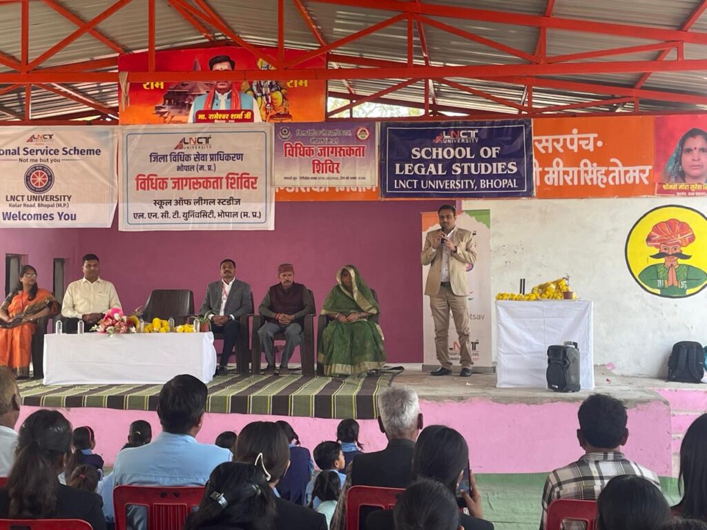 सुनीत अग्रवाल न्यायाधीश सचिव जिला विधिक सेवा प्राधिकरण भोपाल द्वारा उद्बोधन में ग्रामीणजन एवं विधि छात्रों एवं शिविर में उपस्थित विद्यालयीन छात्र को मुफ्त विधिक सहायता, विधिक सेवा प्राधिकरण, विधिक सेवा समिति, एलएडीसी स्कीम, लीगल एड क्लीनिक एवं लीगल ए क्लीनिक के संचालन में विधि छात्रों की भूमिका, बालकों के अधिकार, पोक्सो अधिनियम गुड टच बेड टच, नालसा टोल फ्री नंबर 15100 की जानकारी दी गई।