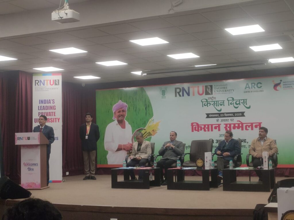 सीएनएन सेंट्रल न्यूज़ एंड नेटवर्क–आईटीडीसी इंडिया ईप्रेस /आईटीडीसी न्यूज़ भोपाल : राष्ट्रीय किसान दिवस के अवसर पर कृषि अनुसंधान केन्द्र, कृषि संकाय, रबीन्द्रनाथ टैगोर विश्वविद्यालय भोपाल द्वारा किसान सम्मेलन का भव्य आयोजन किया गया। कार्यक्रम का शुभारंभ माँ सरस्वती के पूजन के साथ हुआ। इस अवसर पर विश्वविद्यालय के अतिथियों, विषय विशेषज्ञों, संकाय सदस्यों, विद्यार्थियों एवं आसपास के विभिन्न गाँवों से पधारे किसानों ने उत्साहपूर्वक सहभागिता की।