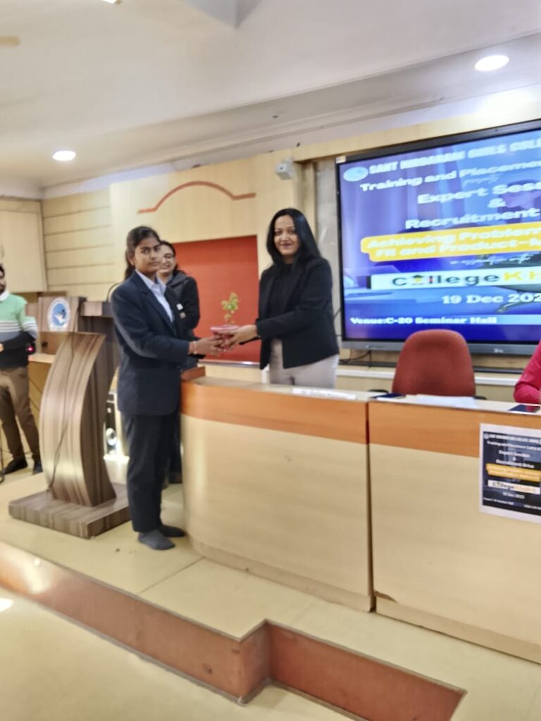 सीएनएन सेंट्रल न्यूज़ एंड नेटवर्क–आईटीडीसी इंडिया ईप्रेस /आईटीडीसी न्यूज़ भोपाल: संत हिरदाराम गर्ल्स कॉलेज के प्रशिक्षण एवं प्लेसमेंट सेल तथा संस्थान के इनोवेशन काउंसिल आई.आई.सी. द्वारा इस शुक्रवार एक विशेषज्ञ सत्र एवं भर्ती अभियान का आयोजन किया गया। यह कार्यक्रम उद्यमिता में प्रॉब्लम-सॉल्यूशन फिट और प्रोडक्ट-मार्केट फिट विषय पर केंद्रित था।