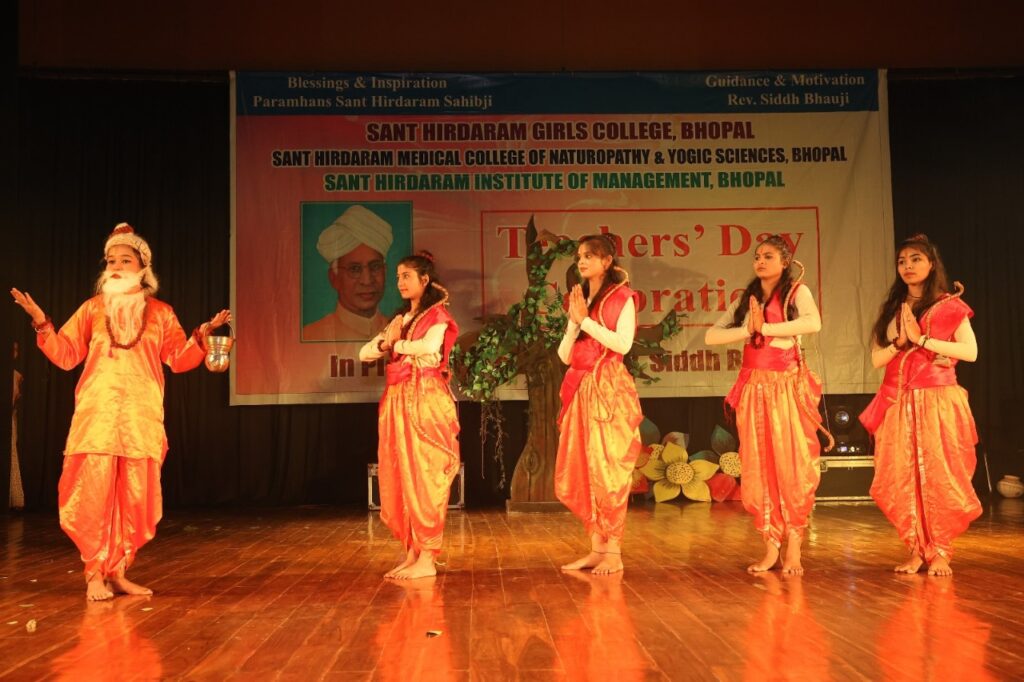 अपनी बात को विस्तार देते हुए कहा कि शिक्षक का दायित्व है कि वह विद्यार्थियों को सही प्रश्न पूछने की प्रेरणा दे और उन्हें ईमानदारी, सहनशीलता एवं निरंतर आत्मविकास की ओर उन्मुख करे। अपने उद्बोधन में डॉ. आशीष ठाकुर, निदेशक, संत हिरदाराम इंस्टीट्यूट ऑफ़ मैनेजमेंट ने विद्यार्थियों को अपने शिक्षकों से निरन्तर जुड़े रहने का आग्रह करते हुए कहा कि गुरु का दायित्व शिक्षण तक सीमित न होकर समाज और राष्ट्र के निर्माण से भी जुड़ा हुआ है। इसी अवसर पर संत हिरदाराम मेडिकल कॉलेज ऑफ़ नेचरोपैथी एंड योगिक सांईस के प्राचार्य अंकेश सिंह ने संस्था के आदर्श एवं उद्देश्यों पर प्रकाश डालते हुए विनम्रता, समर्पण, अहंकार-त्याग तथा भारतीय संस्कृति और परम्पराओं के संरक्षण का संदेश दिया। उन्होंने छात्राओं को सोशल मीडिया से दूरी बनाकर कौशल विकास पर ध्यान केंद्रित करने हेतु प्रेरित किया।