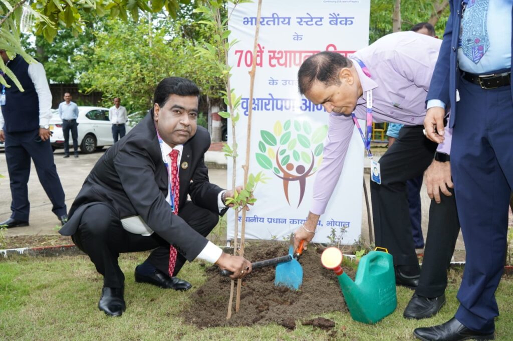 सीएनएन सेंट्रल न्यूज़ एंड नेटवर्क–आईटीडीसी इंडिया ईप्रेस /आईटीडीसी न्यूज़ : भारतीय स्टेट बैंक ने अपने 70वें स्थापना दिवस को सामाजिक उत्तरदायित्व के साथ मनाते हुए देशभर में विविध कार्यक्रमों की श्रृंखला आयोजित की। इसी क्रम में एसबीआई के रेवा परिसर में आज एक वृक्षारोपण कार्यक्रम का आयोजन किया गया, जिसने पर्यावरण संरक्षण की दिशा में बैंक की गहरी प्रतिबद्धता को सशक्त रूप से प्रस्तुत किया।