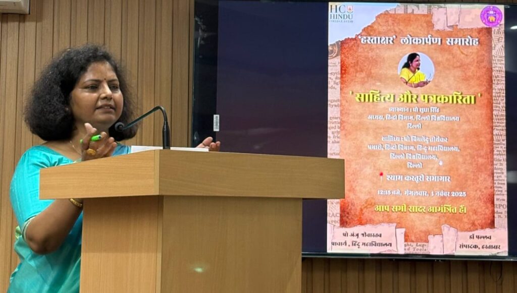 सीएनएन सेंट्रल न्यूज़ एंड नेटवर्क–आईटीडीसी इंडिया ईप्रेस /आईटीडीसी न्यूज़ भोपाल / दिल्ली : हाथ से लिखना केवल परंपरा का निर्वाह नहीं, बल्कि आत्मा से संवाद का माध्यम है। कलम और कागज़ का मेल रचनात्मकता, विविधता और मौलिकता को सहेजकर रखता है। इस युग में जब तकनीकी उपकरण हमारी सोच पर प्रभाव डाल रहे हैं, तब हमें अपनी मौलिकता और संवेदना को बचाए रखना चाहिए। सुपरिचित आलोचक और दिल्ली विश्वविद्यालय के हिंदी विभाग की अध्यक्ष प्रो सुधा सिंह ने हिन्दू महाविद्यालय में हिंदी विभाग की हस्तलिखित पत्रिका हस्ताक्षर के नए अंक के लोकार्पण समारोह में कहा कि लेखन की परंपरा का सबसे प्रामाणिक स्वरूप वही है, जिसमें मनुष्य की आत्मा, संवेदना और विचार का मेल हो। आज जब कृत्रिम बुद्धिमत्ता हमारे विचारों को प्रभावित कर रही है,