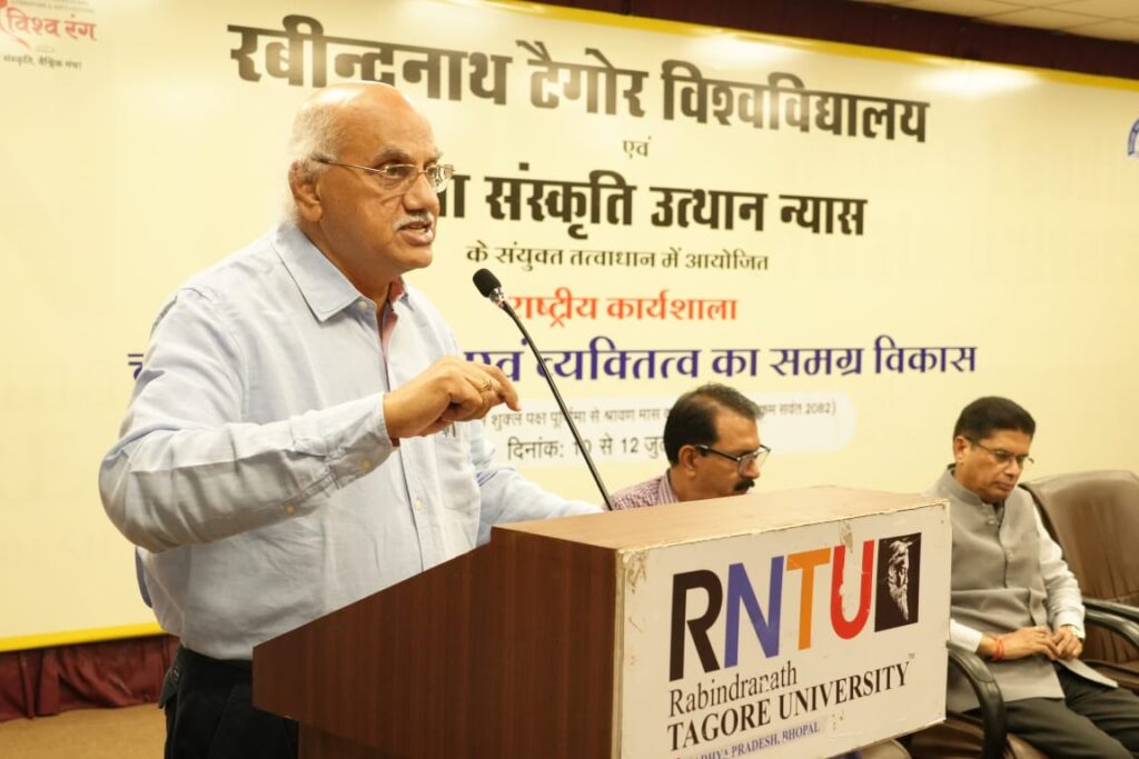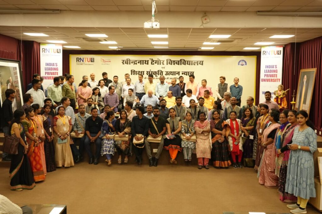 सीएनएन सेंट्रल न्यूज़ एंड नेटवर्क–आईटीडीसी इंडिया ईप्रेस / आईटीडीसी न्यूज़ भोपाल / नई दिल्ली : रबीन्द्रनाथ टैगोर विश्वविद्यालय, भोपाल एवं शिक्षा संस्कृति उत्थान न्यास, नई दिल्ली के संयुक्त तत्वावधान में आयोजित तीन दिवसीय राष्ट्रीय कार्यशाला का समापन भव्य रूप से संपन्न हुआ। कार्यशाला का मुख्य विषय “चरित्र निर्माण एवं व्यक्तित्व का समग्र विकास” था, जिसमें पंचकोशीय शिक्षा पद्धति के विभिन्न पहलुओं पर विशेषज्ञों द्वारा विस्तार से चर्चा की गई।