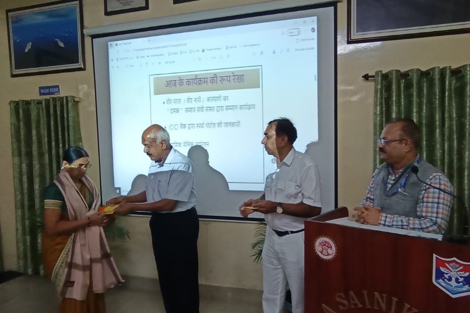 सीएनएन सेंट्रल न्यूज़ एंड नेटवर्क – आईटीडीसी इंडिया ईप्रेस / आईटीडीसी न्यूज़ भोपाल : जिला सैनिक कल्याण कार्यालय,भोपाल के परिसर में वीर नारियों और कल्याणियों के सम्मान,पूर्व सैनिकों के लिए जागरूकता एवं पौधारोपण का संयुक्त कार्यक्रम आयोजित किया गया। यह आयोजन राष्ट्रीय एनजीओ ‘दमक’ समाज सेवी संस्था द्वारा किया गया, जिसमें एल.के. दुबे, राष्ट्रीय संचालक दमक एनजीओ, महेश शुक्ला (पूर्व निदेशक, बीएसएनएल), दीपक रावत (सामाजिक कार्यकर्ता) एवं पंकज शर्मा, आईएएस के सौजन्य से उपस्थित वीर नारियों और द्वितीय विश्व युद्ध की कल्याणियों को अंगवस्त्र, श्रीफल एवं नगद भेंट देकर सम्मानित किया गया।