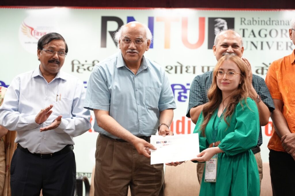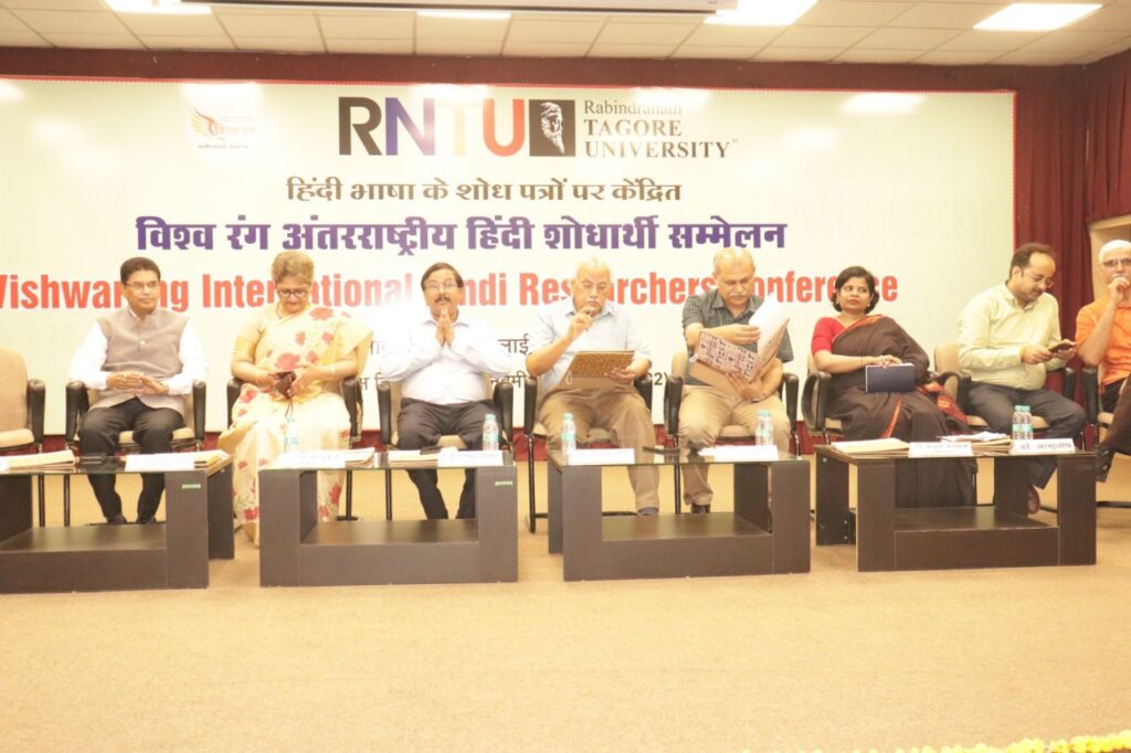 सीएनएन सेंट्रल न्यूज़ एंड नेटवर्क – आईटीडीसी इंडिया ईप्रेस / आईटीडीसी न्यूज़ भोपाल : रबींद्रनाथ टैगोर विश्वविद्यालय, रायसेन द्वारा विश्व रंग फाउंडेशन के सहयोग से आयोजित “विश्व रंग अंतरराष्ट्रीय हिंदी शोधार्थी सम्मेलन” का समापन अत्यंत गरिमामय और सांस्कृतिक वातावरण में संपन्न हुआ। दो दिवसीय इस सम्मेलन में भारत सहित ओमान, कतर, अर्मेनिया, अमेरिका, अफगानिस्तान और चीन के शोधार्थियों, विद्वानों और हिंदी प्रेमियों ने भाग लिया।
