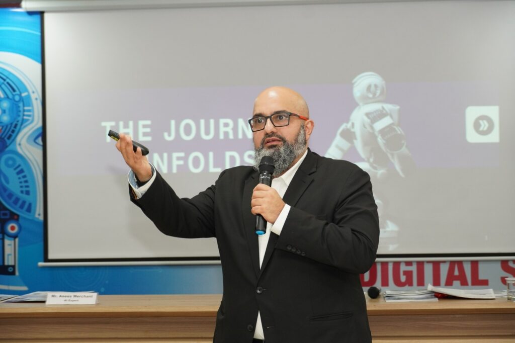इस दौरान मुख्य वक्ता के रूप में उपस्थित अनीस मर्चेंट ने युवाओं से एआई के चलते होने बदलावों और अवसरों पर बात की। उन्होंने कहा कि आज एआई नई नौकरियों और अवसरों के दरवाजे खोल रहा है, लेकिन साथ ही यह पारंपरिक मैनपावर आधारित नौकरियों के लिए एक चुनौती भी बनता जा रहा है। उन्होंने इस बात पर ज़ोर दिया कि एआई जरूरी है, लेकिन किसी भी काम को सही मायनों में समझने, महसूस करने और निभाने के लिए इंसान की भूमिका सबसे अहम है। निदेशक मर्चेंट ने यह भी स्पष्ट किया कि एआई सीखने के लिए अब केवल इंजीनियरिंग या टेक्निकल डिग्री की ज़रूरत नहीं है।